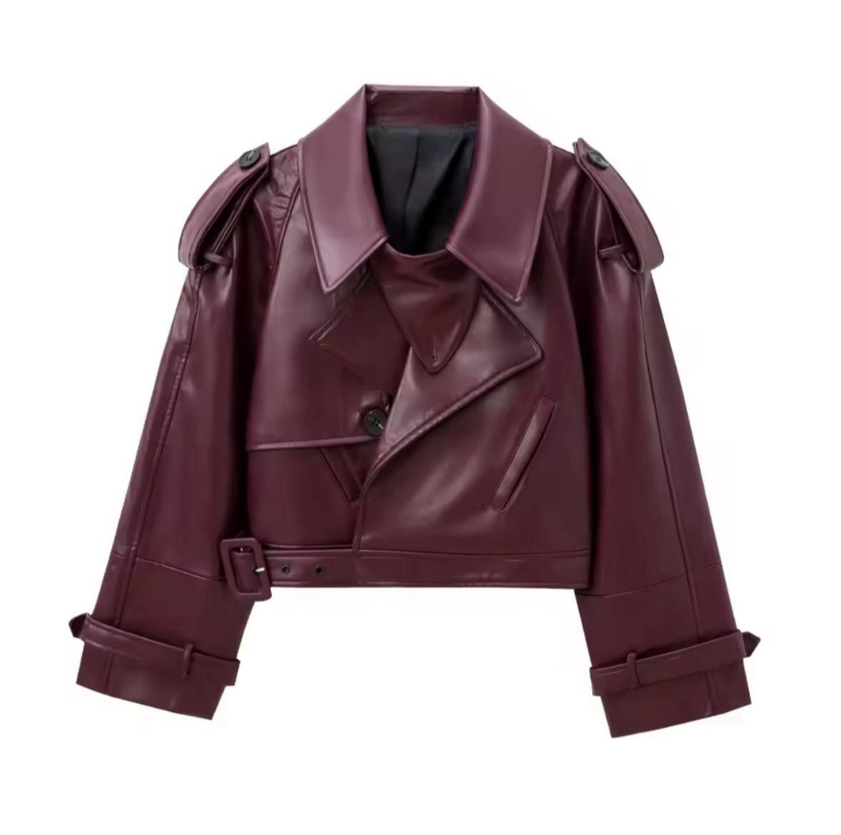 ג’קט דמוי עור בגוון בורדו עמוק ואלגנטי, המשלב מראה יוקרתי עם קו עיצוב מודרני ונקי. החומר מעניק תחושת סטייל חזקה ומתוחכמת, בעוד הצבע הבורדו מוסיף עומק ונוכחות ייחודית. מתאים לשילוב יומיומי וליצירת לוק ערב מרשים.